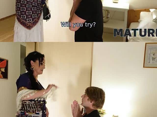 MATURE4K. Brunette Hair in flesh-colored nylons is rammed by her neighbour