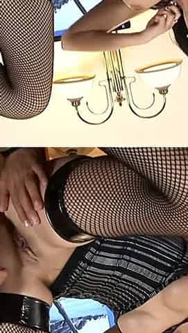 Woman in red mesh nylons gets a large vibrator in her snatch Regina Noir