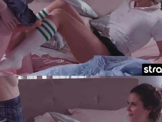 StrapOn Lesbian with big boobs fucks her blonde sexy GF