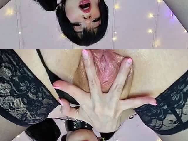 Pink labia close up of naive brunette