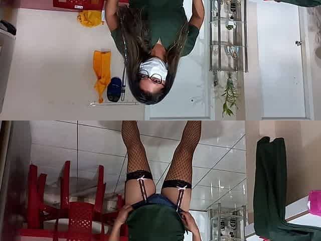 Secretary maid Milf stuck as mop the floor under the table and fucked by her boss!