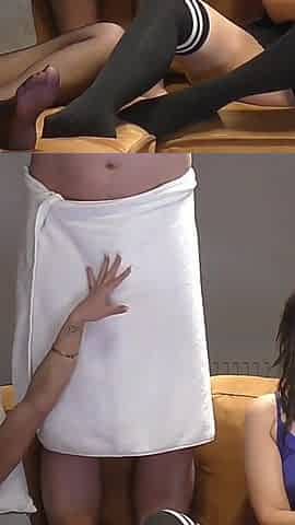 Two Hot Sexy MILF Wives Play with a Small Dick Guy and Leave Him Frustrated After Giving a Slow Handjob by Cock Teasing