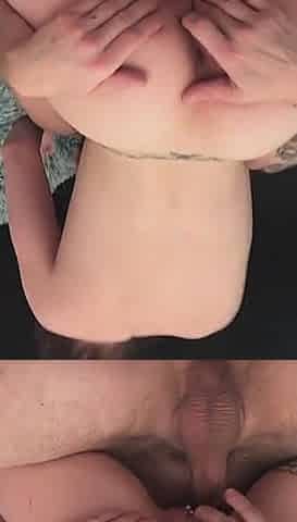 Small tit brunette sucks a big cock hardcore