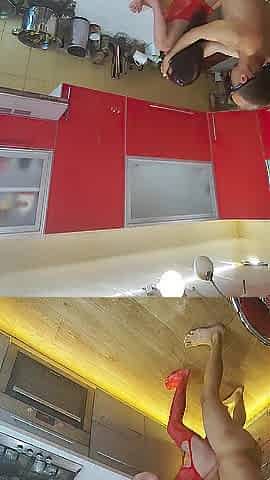 Coarse sex with slim wife at the kitchen