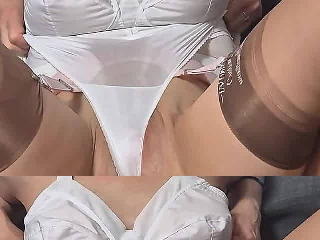 MILF in Lingerie, Boots, Stockings Gets Fucked by Her Fuck Machine & Her Husband Then Cum on Her Ass