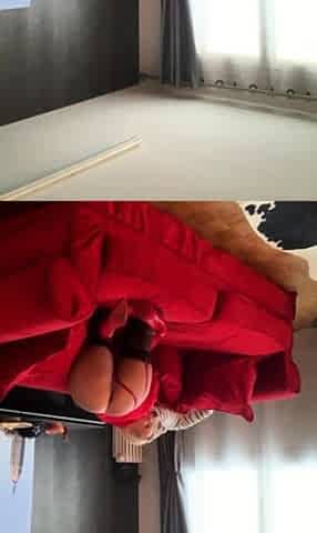 Pink nylon stockings, red rubber dildo and my kinky mood for a good self-fucking.
