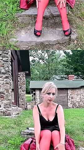 Redheaded Dafna May rocks lacy lingerie and stockings in a steamy couple session
