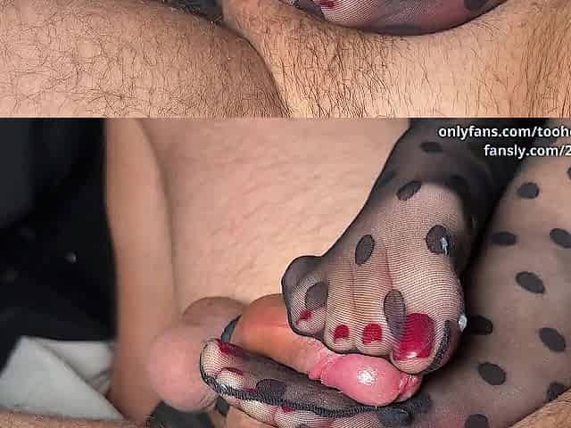 Hot Whore in Erotic Stockings Masturbates Her Pussy Through White Panties and Gets a Juicy Orgasm