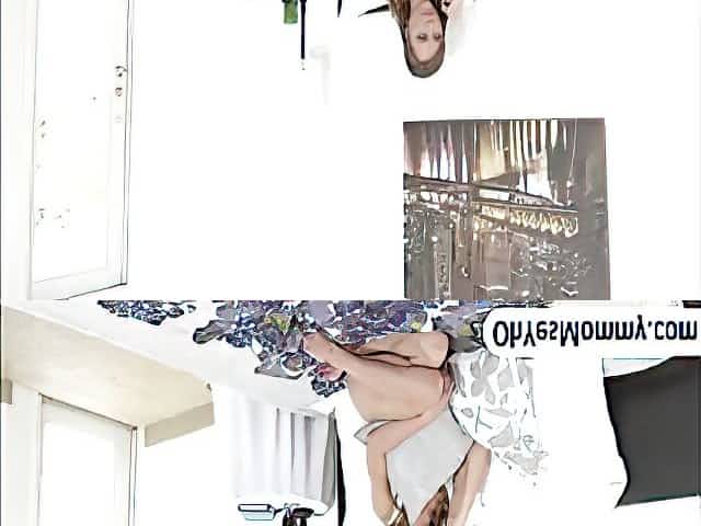 Threesome and mouth cum with curvy stepmother and hot dress girlfriend