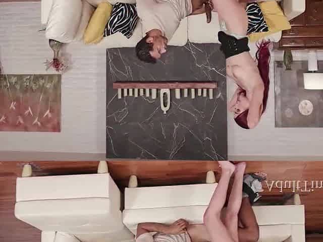 Flexi Redhead Can Easily Take on Two Guys at Once and Get a Double Facial.