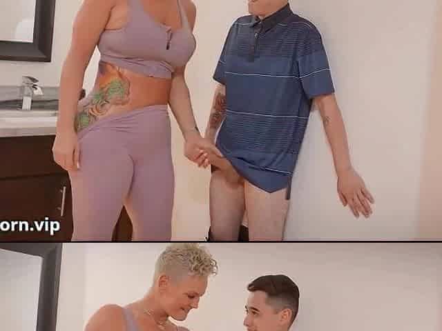 Stepmom wakes up to stepson s hard cock, he helps MILF cum