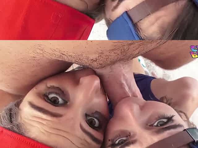 Lewd Schoolgirl & Hawt Teacher Blow Large Weenie – Taboo Lesson 3some!