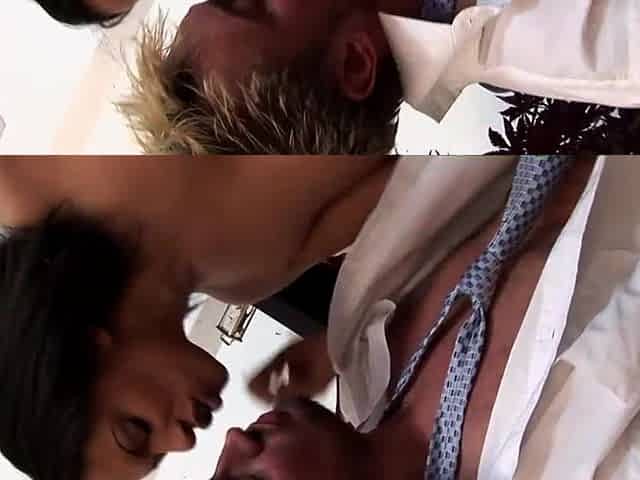 Gorgeous office FFM fuck with brunettes Freya Von Doom and Ivy Mae Lynn
