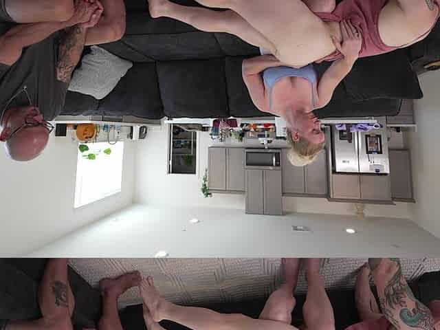 Big titted blonde takes two guys then squirts: Doggy, Missonary Big Tits Porn