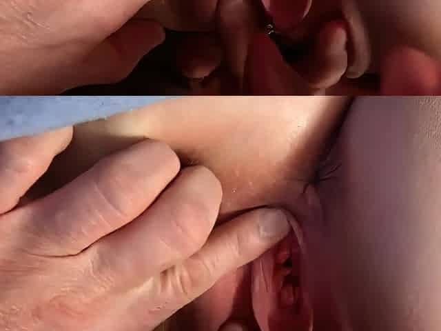 Brunette chick Roxee Couture spreads legs to help her man cum