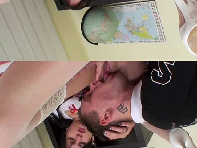 Hawt Golden-Haired from Finland in Nylons and with a Miniskirt No Pants tries to tempt Her Teacher