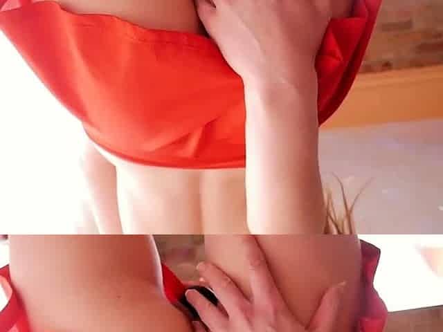 Brunette Sandy Cheeks moans while pleasuring her clitoris