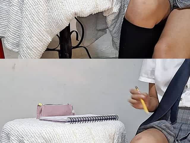 Hot schoolgirl rides a dildo in a miniskirt. Double orgasm.