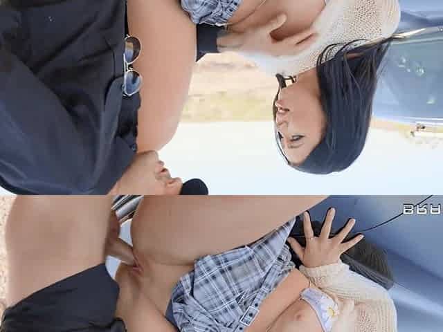 Curvy brunette publicly fucked a border policeman right in the middle of the highway.