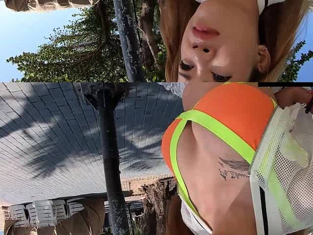 Skinny Asian shoplifter Mina Luxx gives head and rides a hard dick