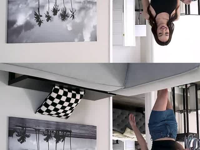 "Naughty Housewife dressed in mini skirt stop cleaning to handjob me"