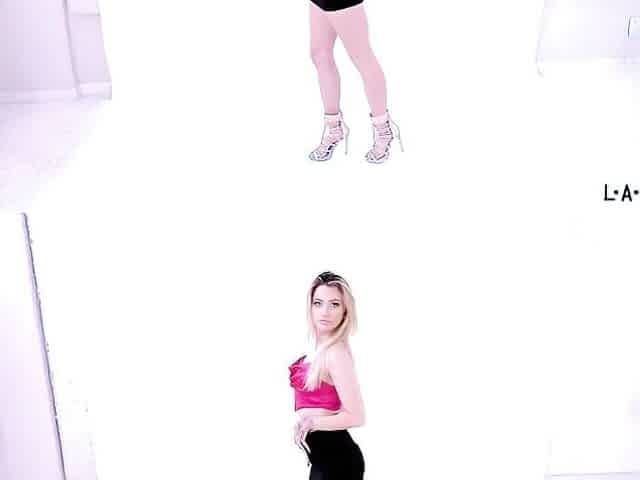 Hot blonde bombshell in miniskirt gets fucked in the studio