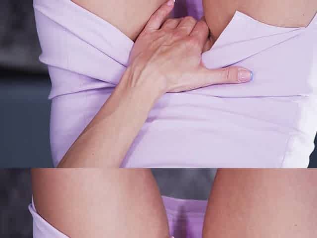 Girl In Thigh High Socks And Mini Skirt Masturbates With A Dildo