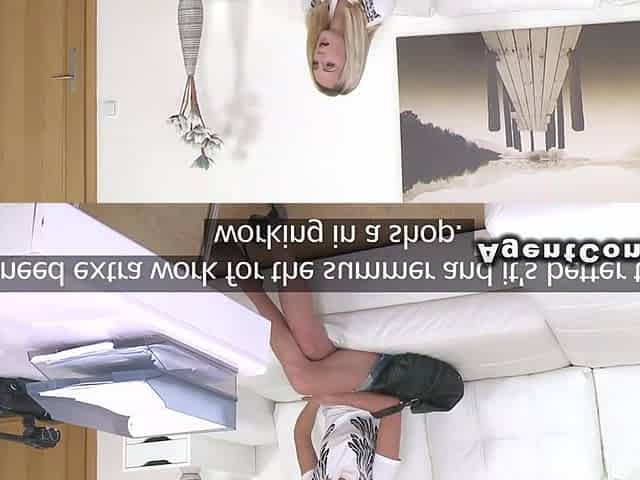 Blonde with pulled down panties fucked in casting. Hot european blonde amateur babe in denim mini skirt has casting interview wi