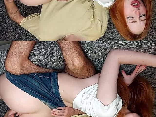 Horny Guy Can't Stop Cumming of His Sexy Red-head Teen Girl