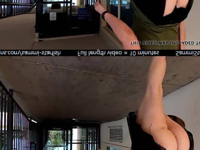 Girl In Cute Mini Skirt And Sexy Heels Masturbates On The Stairs