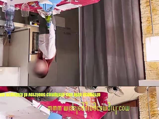Hot chick showing her big butt while cleaning