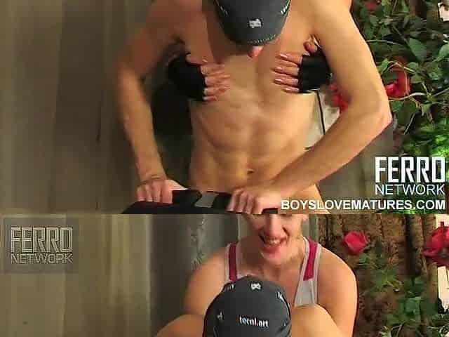 Mini-skirt clad cougar with fabulous juggs enjoying a hardcore threesome
