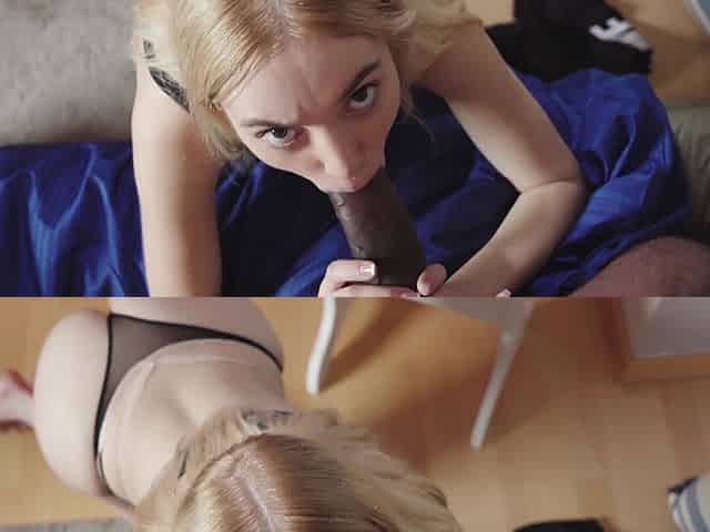 POV video of pretty blonde girl Ally Brooks sucking a fat shaft