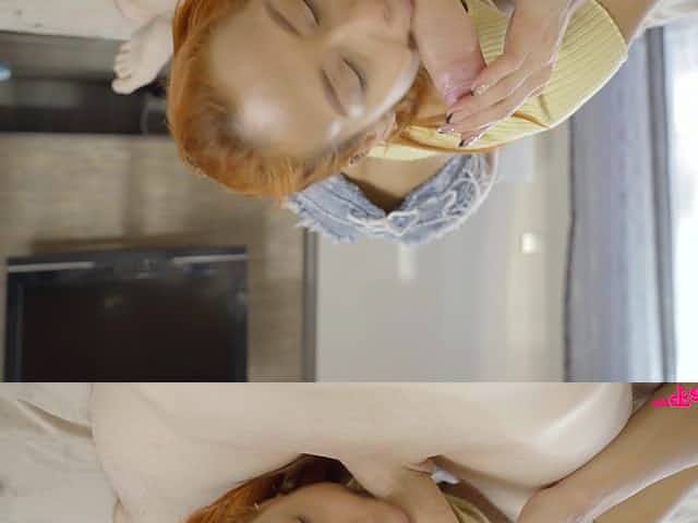 Pale redhead girl opens her legs to be fucked balls deep on the bed