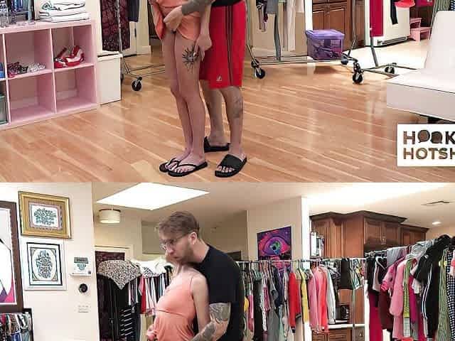 Horny Blonde Sweetie in Grocery Store – Pink Latex Mini Skirt Pulled Up
