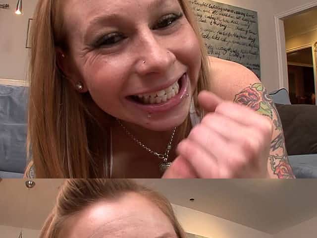 Tattooed hottie Lola gets to play with a hard dong in POV