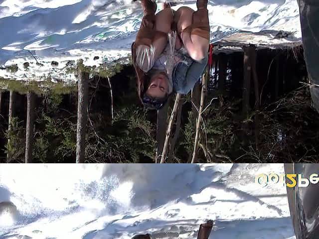 Dark haired filthy hottie adores pissing on snow in the forest