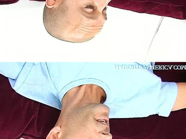 Sweet busty teen Nora works on strong dicks of masked buddies (MMF)