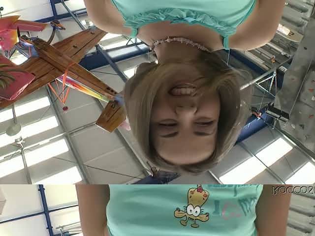 Sizzling blond chick Sophie shows off her ass and pussy upskirt on the stairs