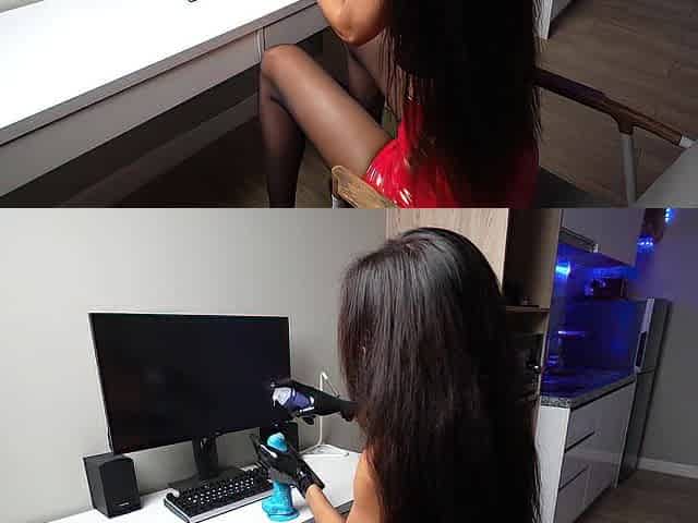 Girls Only Apartment in Japan, No Bra Nipple Stickers, Mini Skirt, Thong G-string Girl Observed From Under the Desk