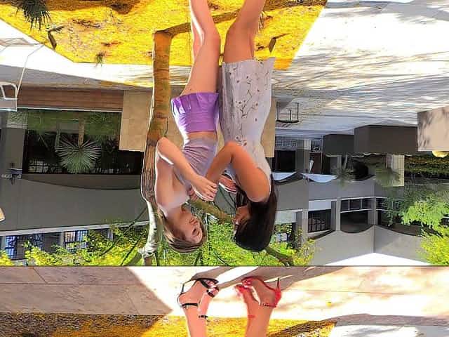 Nasty chicks Eva and Violet like teasing each other in pulic