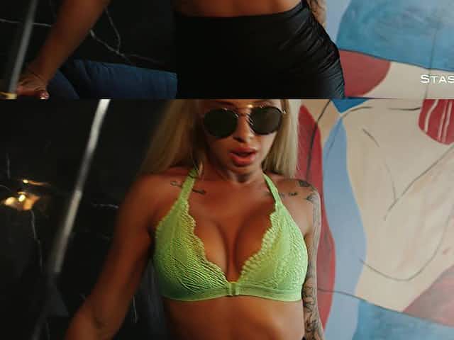 Tattooed brunette twerks her ass fiercely against a massive penis in a reality shoot
