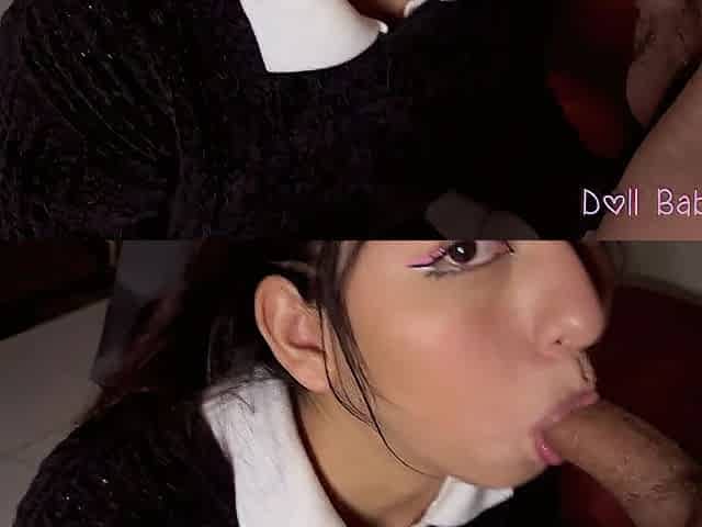 Mila Milan wearing black lingerie sucking a dick before riding it