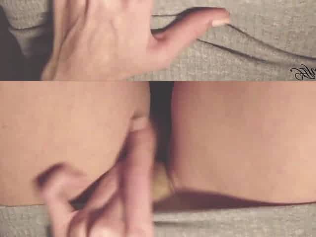 Gorgeous babe masturbates on the bed and gets fucked by a roommate