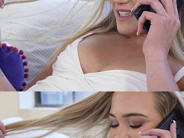 Attractive blonde babe teases her lover and calls him over for sex