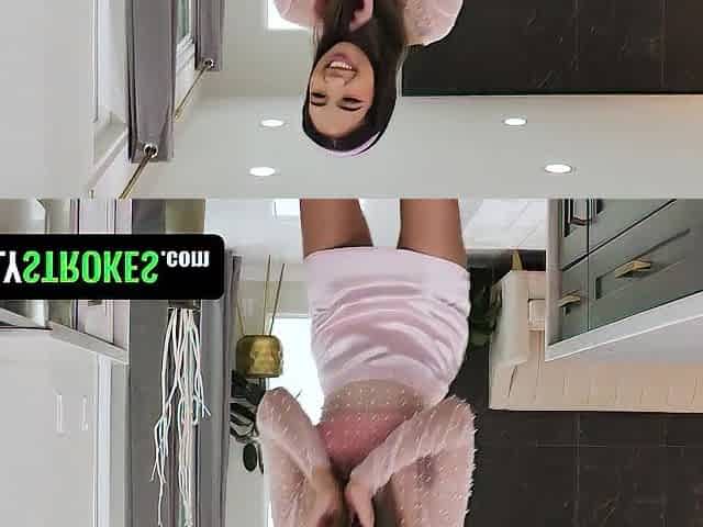 Braless hot brunette babe Jane White shows off her stunning ass and legs in a pink mini skirt while showering