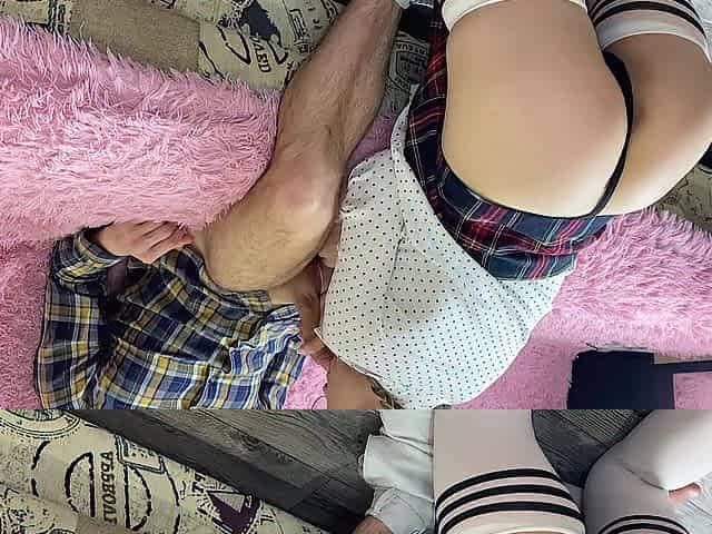 Screwing a sexy student after school! Cum on her petticoat.