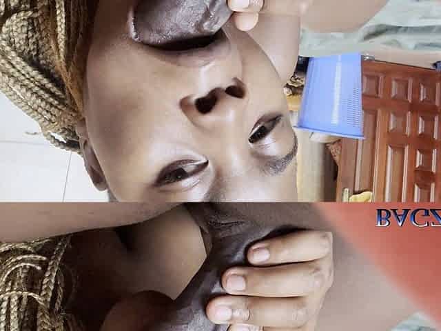 Black Slut with Colored Hair Sucks a Real Big Black Cock