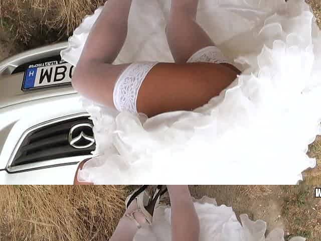 Pretty Bride With A Shaved Pussy Enjoying A Hardcore Missionary Style Fuck In A Car