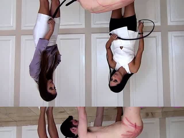 Femdom fetish mistresses fuck bdsm loser with strapon